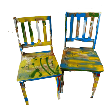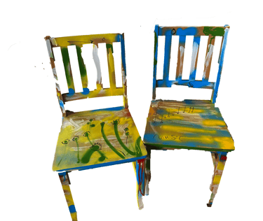 The owners were thrilled to not only have some of Joseph's unique and colourful artwork on the walls but also on the chairs and tables.